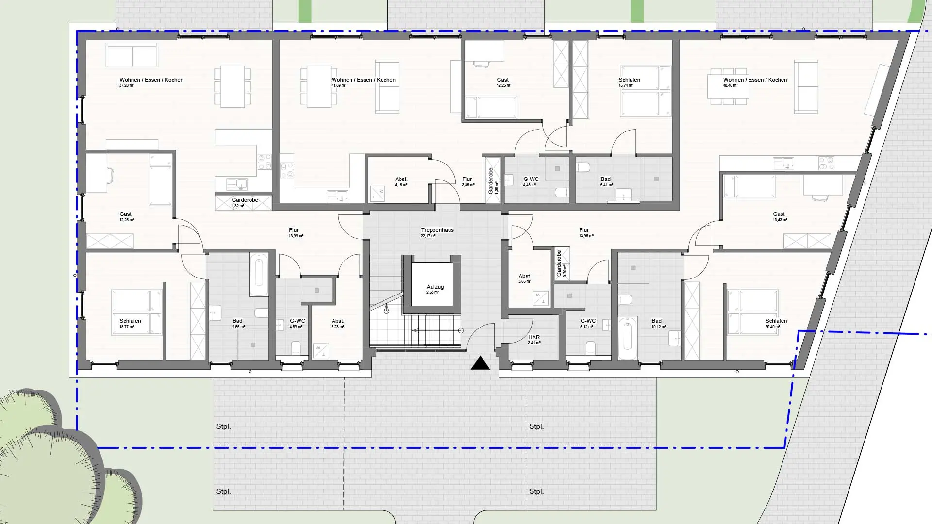 In zentraler Lage von Hamm entsteht ein modernes Mehrfamilienhaus mit klarer, zeitgemäßer Architektur und insgesamt acht großzügigen Wohneinheiten. Das Gebäude bietet ein ausgewogenes Wohnkonzept mit Wohnflächen zwischen ca. 96 m² und 118 m², verteilt auf Erdgeschoss, Obergeschoss und ein attraktives Staffelgeschoss.